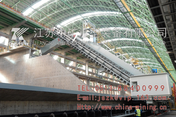 半門式刮板取料機(jī),一條軌道在地面,一條軌道在空中,空間利用率提高了50%,同時(shí)提高了設(shè)備運(yùn)行穩(wěn)定性。