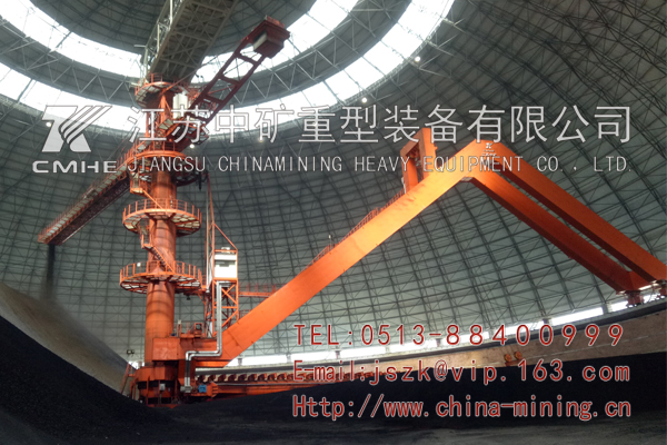 圓形料場(chǎng)堆取料機(jī)是懸臂堆料機(jī)與刮板取料機(jī)集于一體設(shè)備,是一種大型、環(huán)保、連續(xù)、 高效的散料裝卸機(jī)械,實(shí)用于碼頭、鋼鐵廠、水泥廠、大型火力發(fā)電廠和礦山等,可以裝卸鐵礦石(砂)、煤炭、砂子、石灰石、水泥等,圓形堆取料機(jī)被半球形網(wǎng)架外殼所籠罩,堆取料作業(yè)時(shí)集中于定心旋轉(zhuǎn)的回轉(zhuǎn)范圍內(nèi),不受臺(tái)風(fēng)等惡劣天氣的影響,同時(shí)產(chǎn)生的揚(yáng)塵范圍小,又被拘囿在固定的區(qū)域內(nèi),所以,它很好地解決了常規(guī)的敞開(kāi)式條形煤場(chǎng)堆取料機(jī)作業(yè)時(shí)所產(chǎn)生的大量揚(yáng)塵對(duì)周邊環(huán)境造成的大范圍污染,既美觀又環(huán)保,綜合效益高,具備儲(chǔ)料量大、占地面積小、場(chǎng)地利用率高、安全可靠性高、環(huán)保效益好等優(yōu)點(diǎn)。取料和堆料作業(yè)時(shí)具備兩個(gè)層次分明的堆料回轉(zhuǎn)機(jī)構(gòu)和取料回轉(zhuǎn)機(jī)構(gòu),使堆料機(jī)和取料機(jī)形成兩套互不干涉、相對(duì)獨(dú)立的運(yùn)行系統(tǒng),實(shí)現(xiàn)同時(shí)進(jìn)行堆料和取料作業(yè)。我司目前有圓形堆取料機(jī)軌道直45m-120m各種規(guī)格。