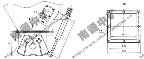 鄂式閘門由本體、扇形閘板、軸、齒輪、密封副,執(zhí)行機(jī)構(gòu)等部件構(gòu)成。手動(dòng)或執(zhí)行機(jī)構(gòu)推動(dòng)搖桿,使齒輪帶動(dòng)扇形閘板沿軸心旋轉(zhuǎn),使兩個(gè)扇形閘板向兩邊開(kāi)啟,物料隨即下落,待接料裝置滿載后,由執(zhí)行機(jī)構(gòu)帶動(dòng)搖桿,使扇形閘板復(fù)位,關(guān)閉截?cái)嘞侣涞奈锪稀?/p>