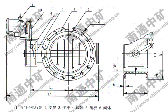 注:法蘭連接符合JB78-59《管路附件、法蘭連接尺寸》PNO.6Mpa規(guī)定,也可以按用戶要求采用其它標(biāo)準(zhǔn)。