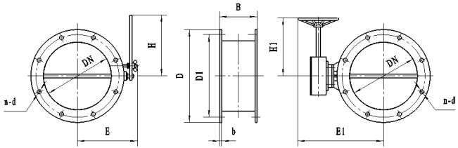 DN | D | D1 | B | b | n-d | E | E1 | H | H1 |