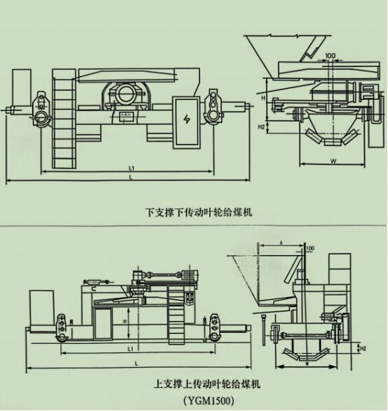 葉輪給煤機(jī)用于火力發(fā)電廠縫隙式煤溝,它可沿煤溝縱向軌道行走或停在一處將煤定量、均勻、連續(xù)地?fù)艿捷斆浩稀1竟粳F(xiàn)生產(chǎn)的葉輪給煤機(jī)按傳統(tǒng)方式分為上傳動(dòng)和下傳動(dòng),按結(jié)構(gòu)型式可分為橋式和門式,按給料方式可分為單側(cè)和雙側(cè)兩種。廣泛用于煤炭、采礦、冶金、建材、化工等行業(yè)。